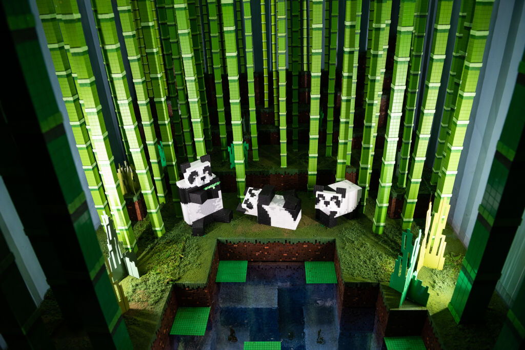 You’ll get to see 15 life-sized Minecraft characters called “mobs” and several dioramas featuring Minecraft biomes, giant trees, flying overhead Phantoms, scrambling chickens and baby pandas playing in a bamboo forest.
